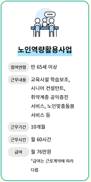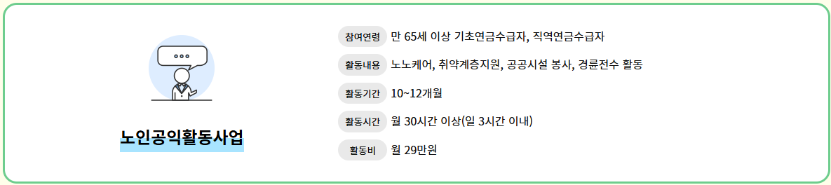 | 공공 일자리 | 정부 및 지자체가 제공하는 단기 혹은 시간제 일자리 | 학교 도우미, 공공시설 관리, 환경 정비 |