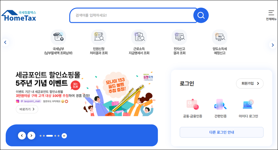 - 국세청 홈택스 접속